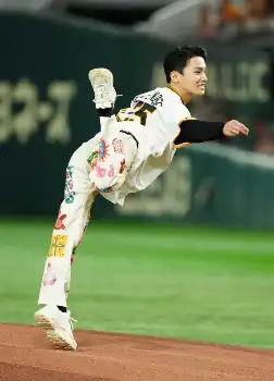 JO1川西拓実 驚異の125キロ始球式に球場騒然 岡本和グラブでワンバン苦笑い「悔しい」野球歴15年