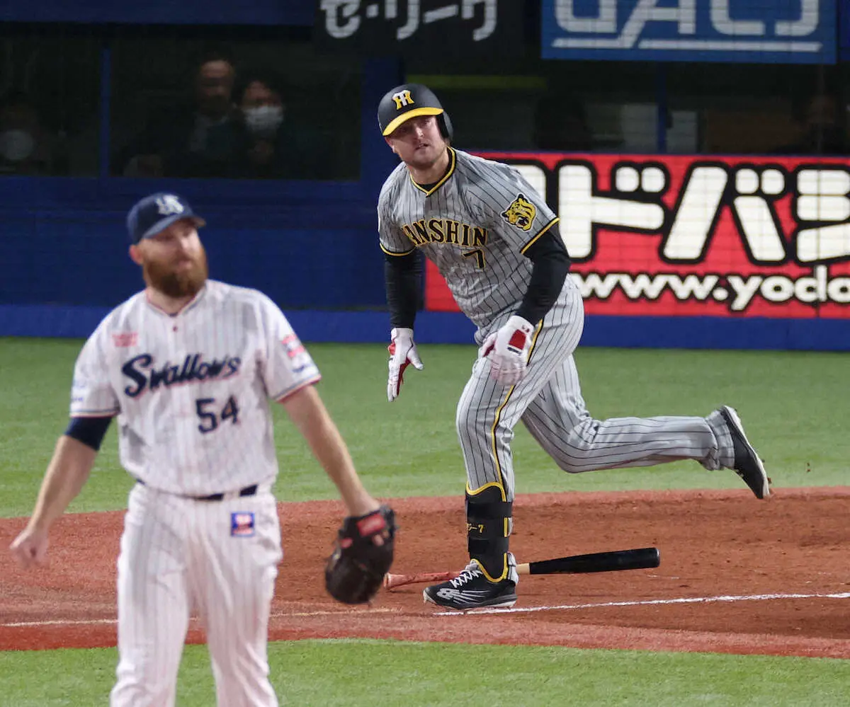 岡田監督の先発起用にも応えた。左翼のポジションは左打ちの前川との併用が続いているが、この日は相手投手が右のサイスニード。「右対右」にもかかわらずスタメン出場を果たした。4日のDeNA戦に続いて佐藤輝を6番に押しのけ、クリーンアップとしてこれ以上ない結果を残した。