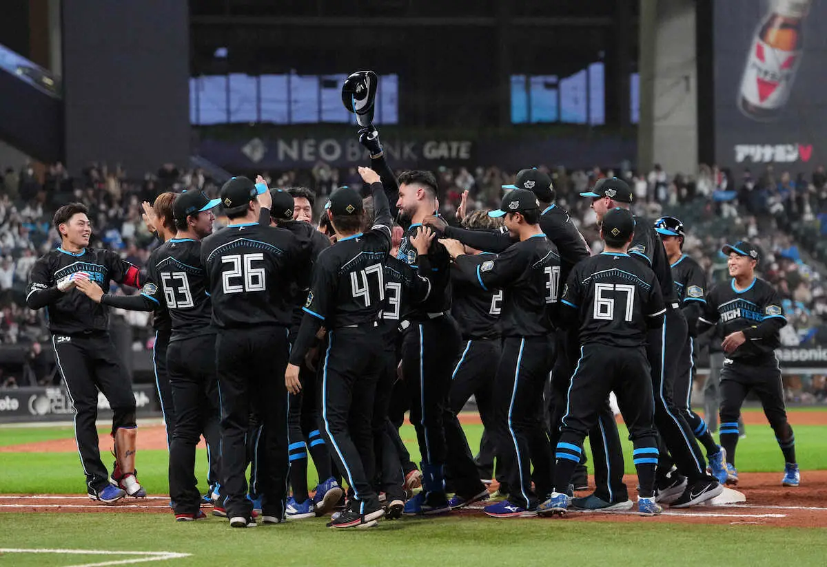 この日から「エスコンフィールド1周年シリーズ」がスタート。黒を基調とした限定ユニホーム初日に白星を飾り、単独2位に浮上した。「キャンプ中からこういう勝ち方はできていた。別に不思議じゃない。去年(まで)はなしで」と笑った新庄監督。2年連続最下位からの逆襲はまだ始まったばかりだ。(田中 健人)
