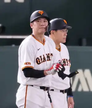 <巨・D>初回、先制となる2点適時打を放った坂本(左)(撮影・大城 有生希)
