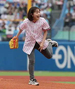 「KASUMI 2024」のユニホームで左腕からワンバウンド投球だった。始球式は人生初で、ヤクルトの同じ左腕・石川とキャッチボールしてアドバイスも受けて臨み「凄く緊張した。練習はノーバウンドでいけてたんですけど、凄く楽しかった。70点くらいです」と笑った。