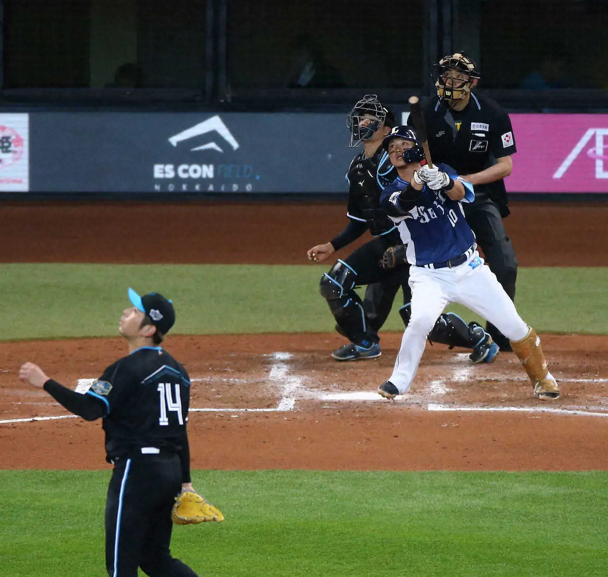 かつての「ペッパー師匠」が古巣相手に豪快弾で試合を決めた。地元・北海道でのヒーローインタビュー。西武・佐藤龍は「(外野を)越えたと思ったけど、万波がライトだったので捕られると思った。入るとは思わなかった」と笑った。