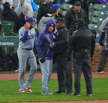 気温8度の寒さに加え、試合前から雨が降っていたリグリー・フィールド。試合は予定通り開始となったが、2回裏から雨脚が強くなった。3回、今永がマウンドに上がった際にはマウンドやホームに土がまかれ、4回の投球前には内野にも土がまかれた。さらに4回のカブスの攻撃中にも試合を止めて内野に土を入れたが、1死一、三塁となったところで中断となった。