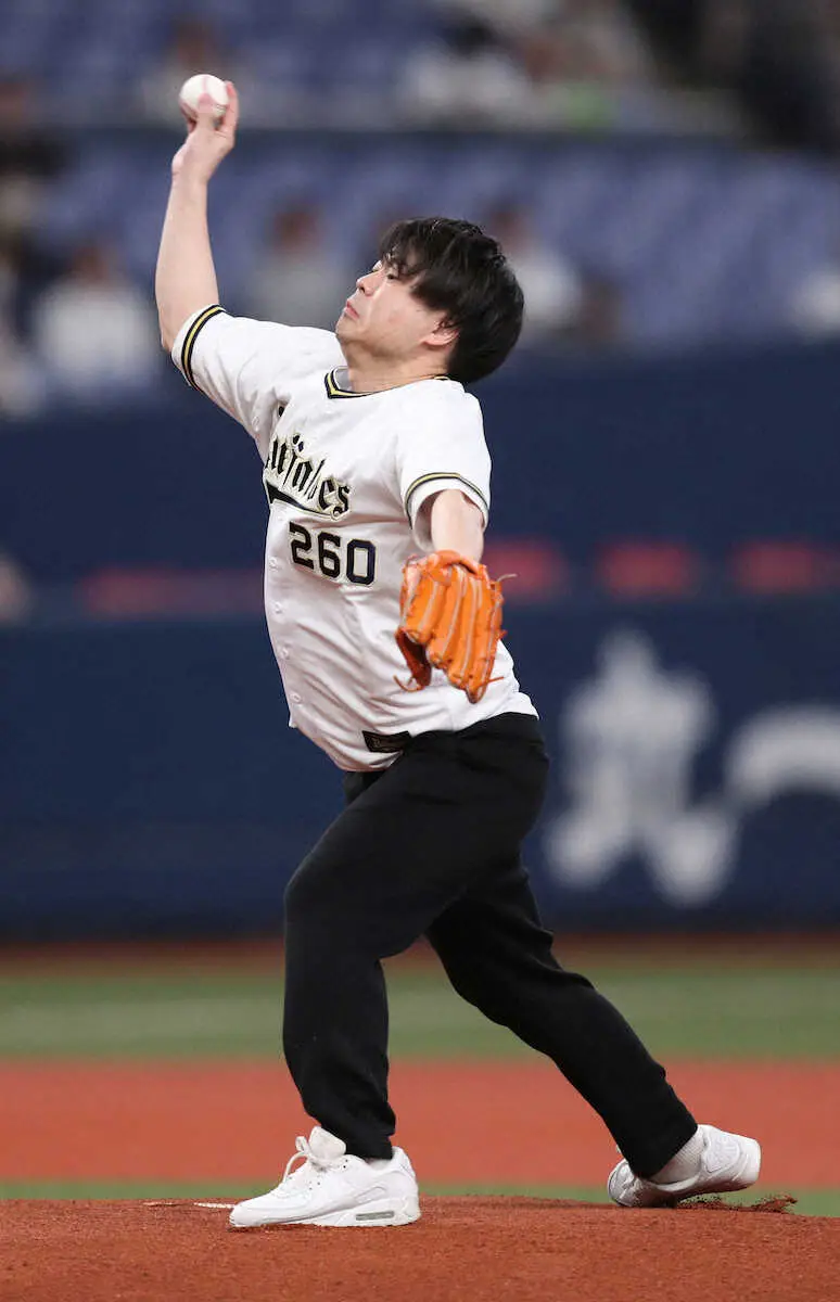 お笑いコンビのライスが京セラドームのオリックス―楽天戦の特別始球式に登板した。
