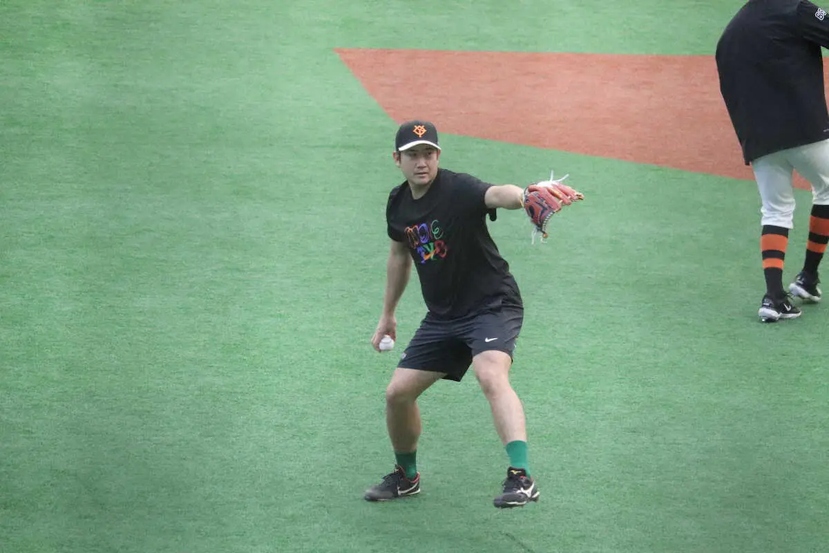 ジャイアンツ球場の投手練習でキャッチボールなどで調整した右腕は「両外国人がいい。率も残っていますし、うまく対応している」と警戒。