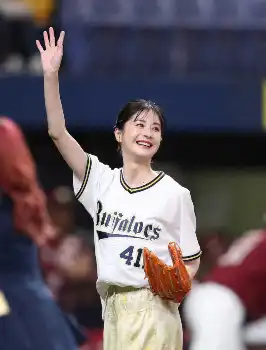 女優の松本若菜が京セラで始球式 ワンバウンドに「今回もダメでした」と悔やむも、故郷の鳥取県をPR