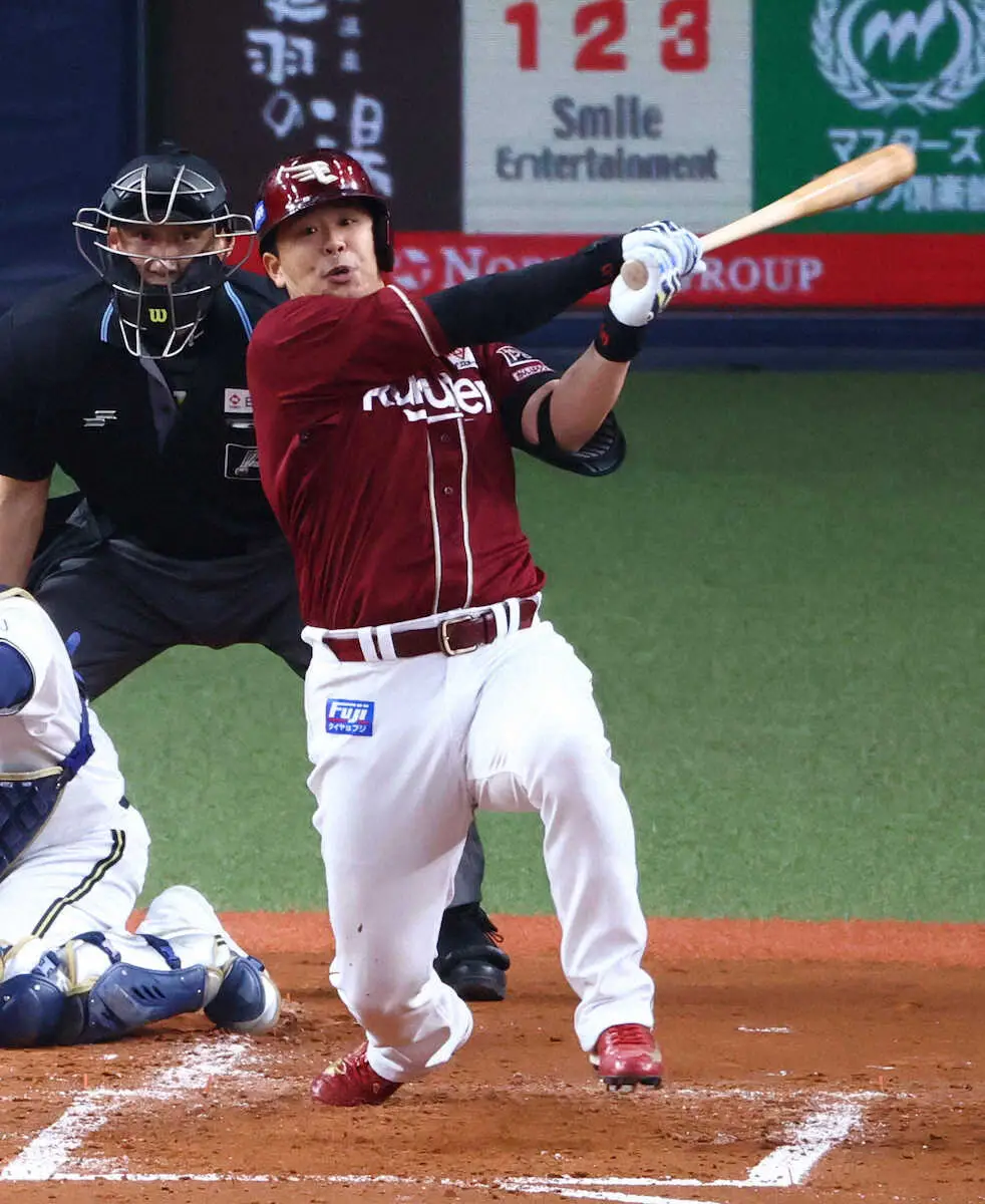 開幕から不振の浅村はこの日、初めて4番から3番に打順を移して、3回1死三塁で先制の左前適時打。9回にも左前打を放ち、6試合ぶりにマルチ安打をマークした。