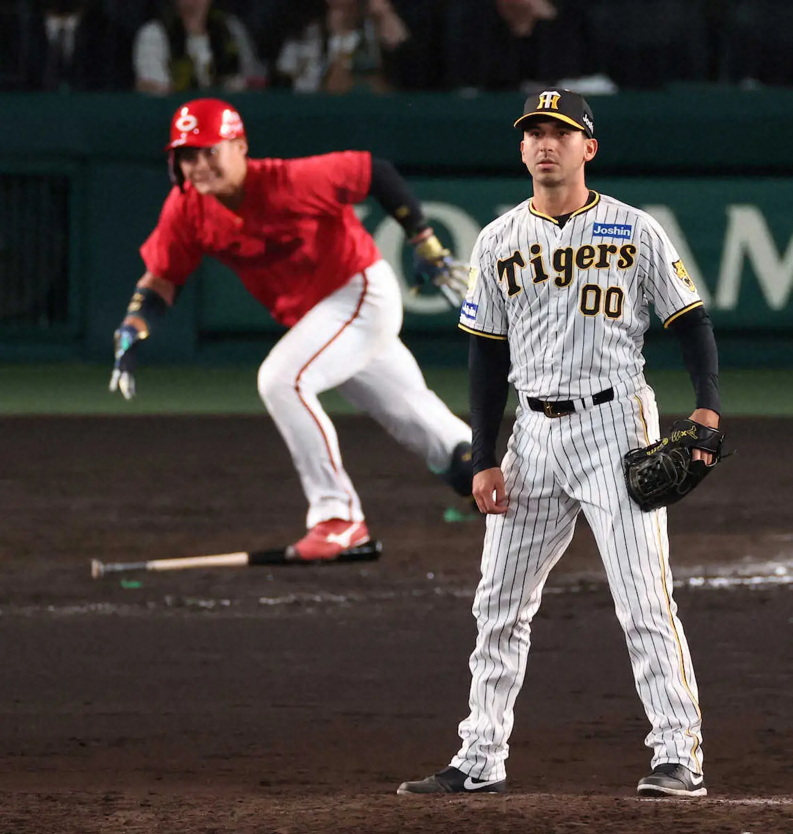 0―0の9回から2番手として登板。先頭・小園に右前打を許すと、続く堂林に犠打で送られ、1死二塁のピンチを背負った。それでも続く代打・松山を苦しみながらも7球を要して空振り三振に仕留めて2死にこぎ着けた。だが…。カウント1―1から田村へ投じた3球目の155キロ直球が、内角高めに構えた梅野のミットよりもやや真ん中寄りに甘く入った。同点の9回、1点もやれない状況で外野陣は前進守備を敷いていたことも、右腕にとっては、不運だった。打球は無情にも中堅手・近本の頭を越えた。試合後は、報道陣の問いかけにも無言を貫き、引き揚げた。