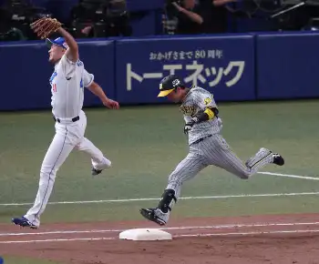 <中・神>8回、近本の内野安打で走者2人が生還(一塁ベースカバーは投手・勝野)(撮影・大森 寛明) Photo by スポニチ 【内田雅也の追球】どん底を脱する姿勢 ギャラリーで見る この記事のフォト 2024年04月13日の画像一覧 もっと見る 2024年04月13日の画像をもっと見る