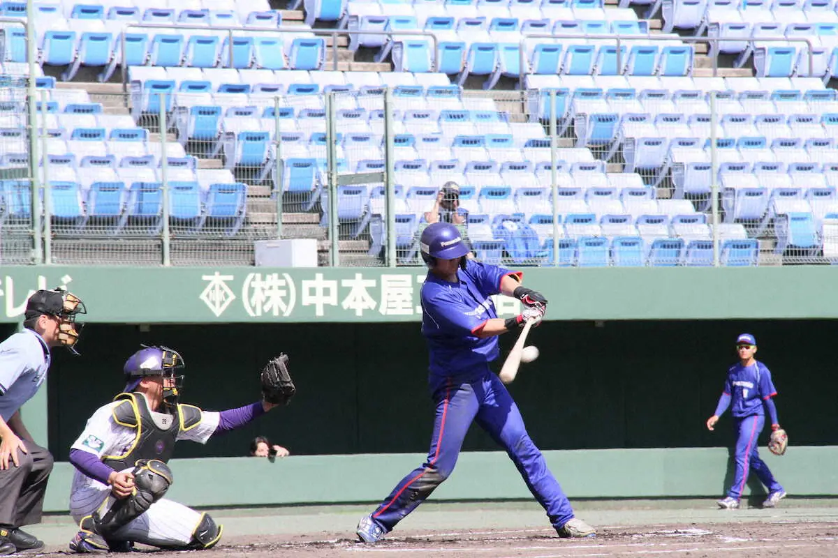 両軍無得点の6回に3四死球で無死満塁の好機。入社3年目で主将2年目となる永江大樹が右前へ先制の2点適時打を放った。