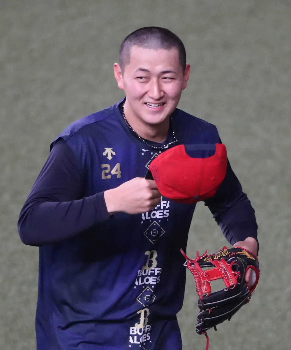 オリックス・紅林が丸刈り姿で練習に登場 西川が「なんか悪いことしたんか?」