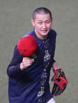 オリックス・紅林が、丸刈り姿で日本ハム戦の試合前練習に登場した。