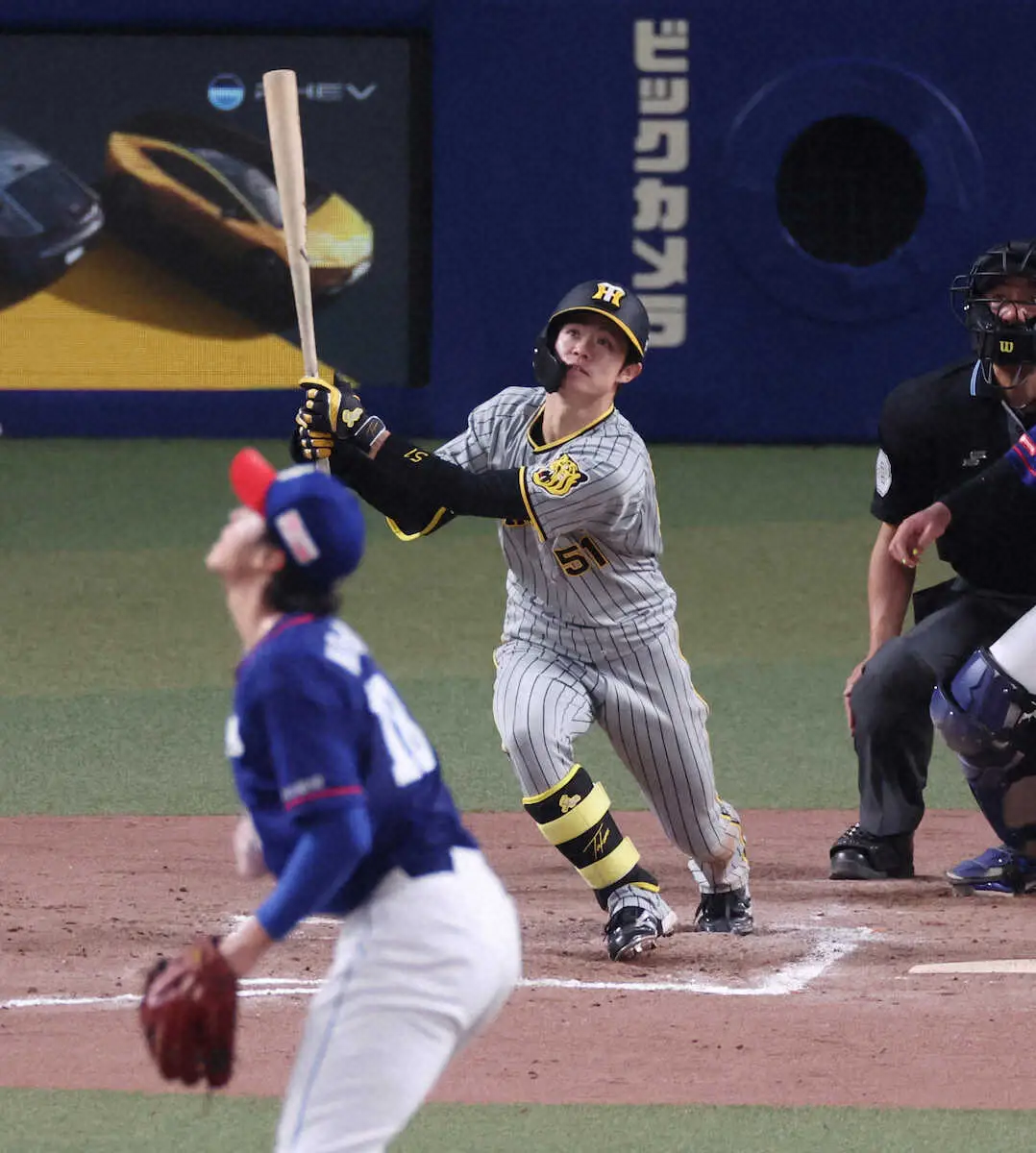 0―1の3回1死で迎えた第1打席に、11打席ぶりの快音となる左前打。ここから2番・梅野の同点打が生まれた。7回2死二塁の勝ち越し機では、右翼・細川の前に落とす決勝打。バットの先だったが執念で運び、シビれる右手に顔をゆがめながらも一塁塁上で胸を張った。「才木が粘りながら頑張って投げていたので、何とか点を取ってあげたかった」。4安打で15三振と、打線は本調子ではない。その分、中野は上がり目を感じている。