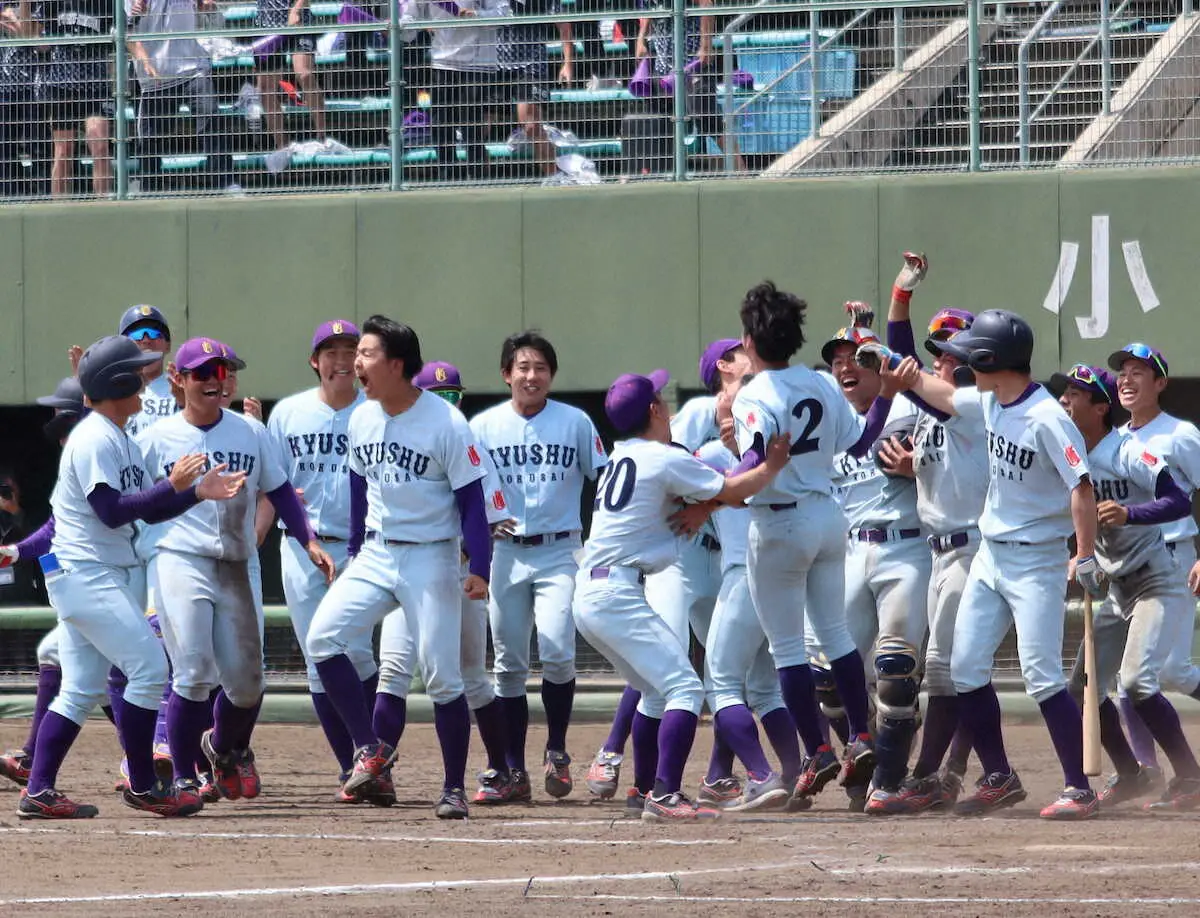 天国の恩師のためにも連敗はしない。九国大が接戦を粘りで制した。もつれにもつれて迎えたタイブレーク。守りで魅せたのは左翼・和久田拳祐(4年)だ。10回2死満塁から左翼線の痛烈ライナーをダイビング好捕し「左打者の打球は切れていくので準備していた」。抜ければ走者一掃の痛打をもぎ取った。この美技が効いてその裏1死二、三塁から相手の暴投でサヨナラ勝ち。開幕戦に敗れた鬱憤(うっぷん)を晴らした。