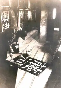 校名板、選手名板は3人いた職員が筆で書いた。明朝体に似た独特の文字である。