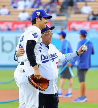 興和社長始球式の捕手役に大谷が登場 球場大歓声 今季からドジャースがパートナーシップ契約