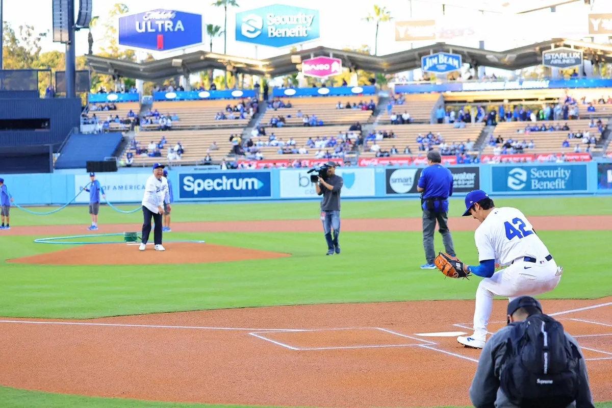ドジャースが今季から複数年のパートナーシップ契約を結ぶ医薬品製造などの興和(本社・名古屋市)の代表取締役社長を務める三輪芳弘氏(68)が15日(日本時間16日)、ドジャースタジアムで行われるナショナルズ戦前に始球式を行った。