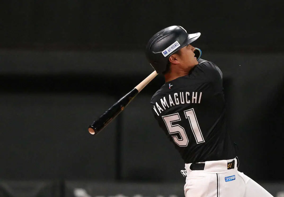 今季70打席目の1号ソロ。山口は「ホッとしました。練習試合、オープン戦で1本も打たずに、ここまで来たことはなかったので正直不安でしたけど、こうして1本出たので、ここからスタート」と息を吐いた。