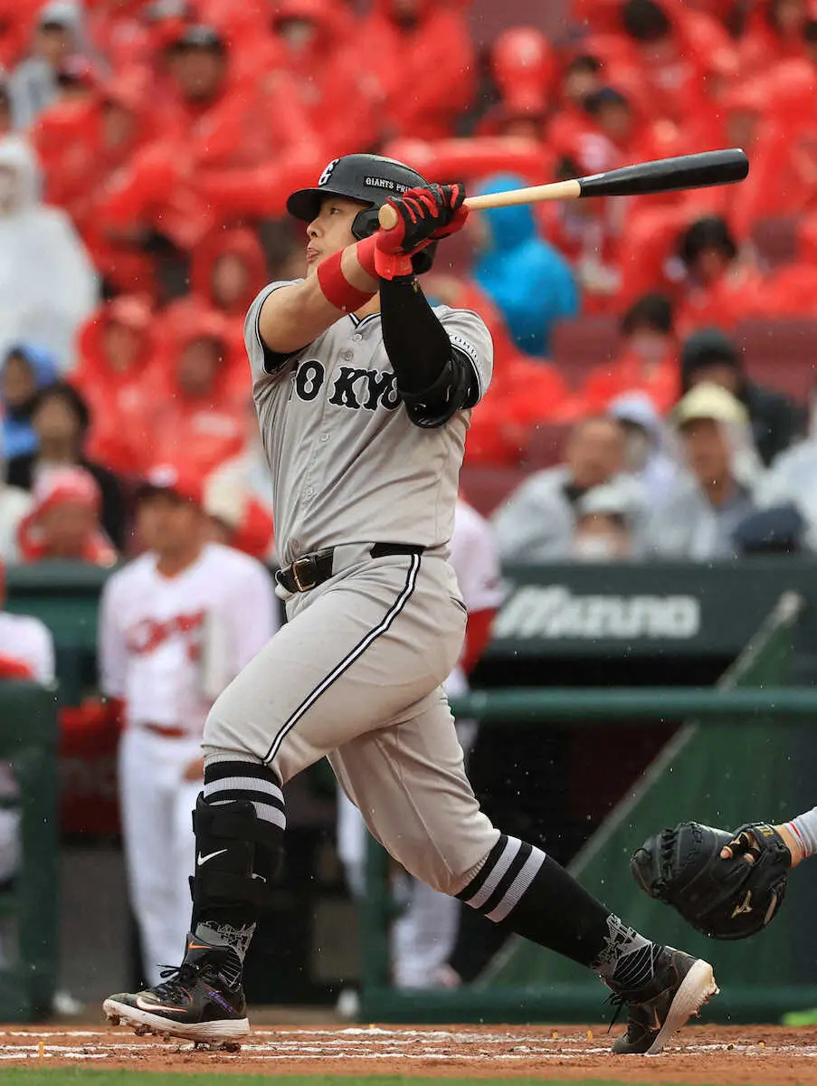 巨人の岡本和真内野手(27)が広島戦(マツダ)の7回に適時打を放ち、チームの連続イニング無得点を26で止めた。