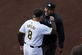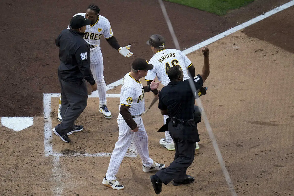 プロファーが退場処分を受け審判に詰め寄るシルト監督(左、ロイター) パドレス指揮官とプロファーがストライク判定めぐり審判にブチギレ 初回… ギャラリーで見る この記事のフォト 2024年04月21日の画像一覧 もっと見る 2024年04月21日の画像をもっと見る