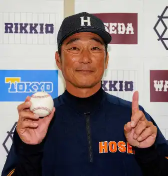 <法大・立大>松下(左)、吉鶴(右)とともに、ウイニングボールを手に、笑顔の法大・大島監督(撮影・木村 揚輔) Photo by スポニチ 法大・大島公一監督が初勝利「選手の頑張りが大きい」 プロでは3球団で10… ギャラリーで見る この記事のフォト 2024年04月21日の画像一覧 もっと見る 2024年04月21日の画像をもっと見る