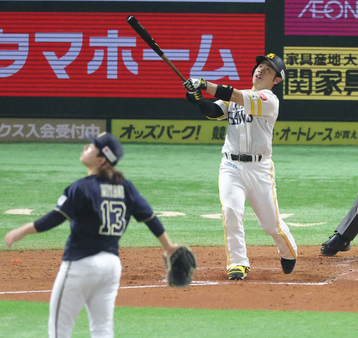 直球は走りに走っていた。オリックス・宮城が投じた初球は153キロ。その直後の104キロを見事に右翼スタンドへ運んだ。「自分のスイングで捉えることができました。うまくタイミングを合わせることができたと思います」。一時は同点に追いつく4号ソロだった。