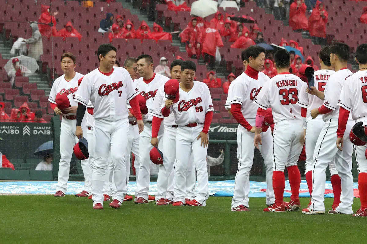 広島は雨に救われ、巨人3連戦は初戦に続いて今季2度目の引き分けに終わった。ナイターで勝ったDeNAと入れ替わり、5位に後退した。
