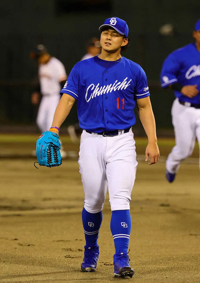 <巨・中>選手交代を告げた立浪監督(撮影・藤山 由理)