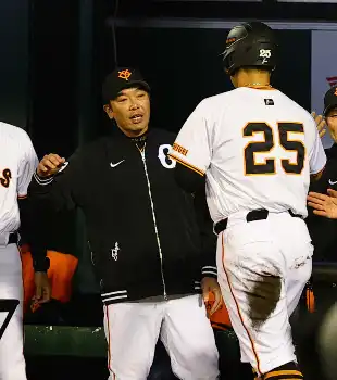 <巨・中>9回、ベンチで戦況を見つめる小笠原 (撮影・西川祐介)