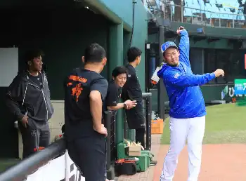 巨人の練習が終わると、曇り空のひたちなか球場に明るい声が響いた。中田は2日から本拠・バンテリンDで行われた今季最初の巨人戦以来の再会となった古巣の面々を目にすると、バットを手に一塁側ベンチへ。坂本や小林、オコエや矢野コーチ、そして球団スタッフらと握手を交わし、ストレッチや素振りをしながら笑顔で言葉を交わした。