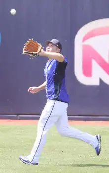 <イースタン 日・D>2回、水谷の飛球を捕球する筒香(撮影・村上 大輔)