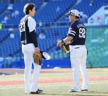 小久保監督と奈良原浩ヘッドコーチと話し込んだあとに井出竜也外野守備走塁兼作戦コーチや選手にあいさつし、外野守備に向かった。