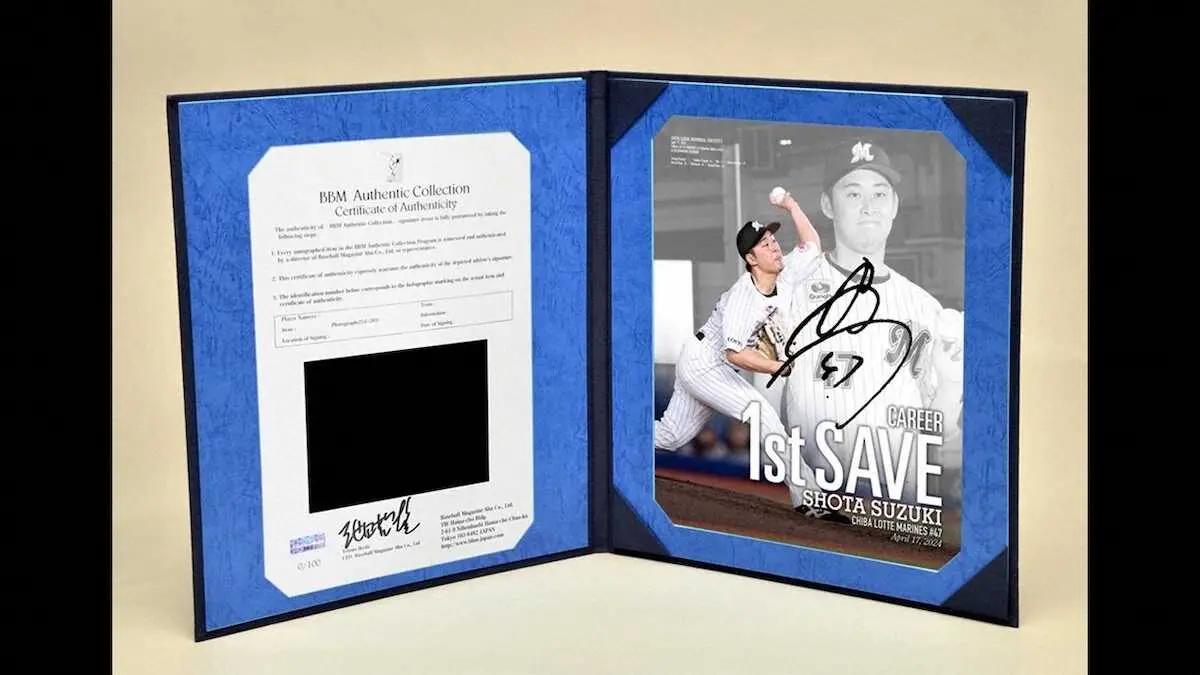 ロッテ・鈴木昭汰投手プロ初セーブ記念直筆サイン入りフォトファイル(球団提供)