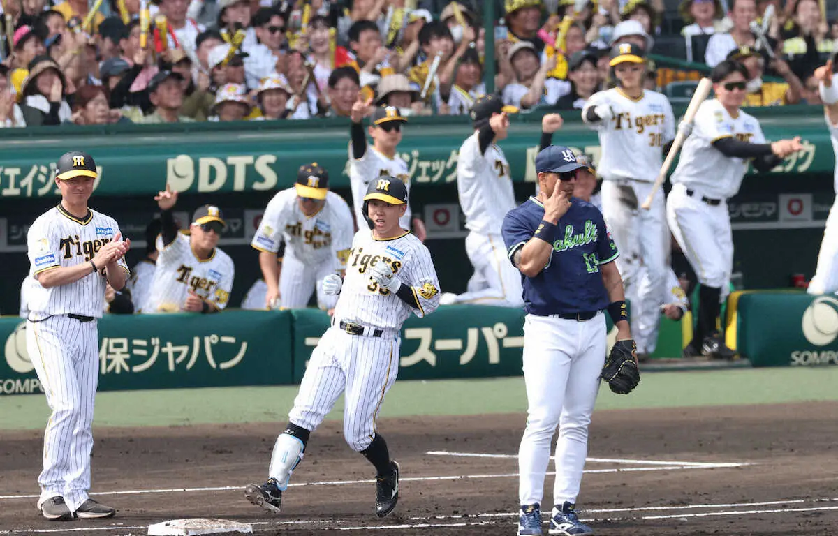 ベンチからは今季初めてスタメンを外れた佐藤輝が、糸原へ拍手を送った。
