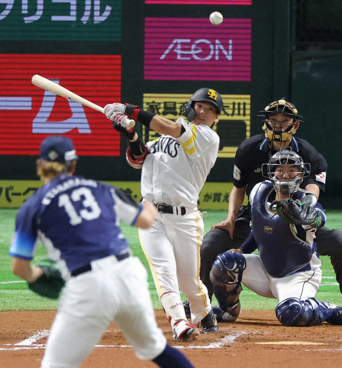 <ソ・西(6)> 7回 無死一塁 プロ入り初安打となる中前打を放つ仲田 (撮影・成瀬 徹) Photo by スポニチ ドラフトで128番目指名「最後の男」がプロ初安打 ソフトバンク・仲田慶介… ギャラリーで見る この記事のフォト 2024年04月29日の画像一覧 もっと見る 2024年04月29日の画像をもっと見る