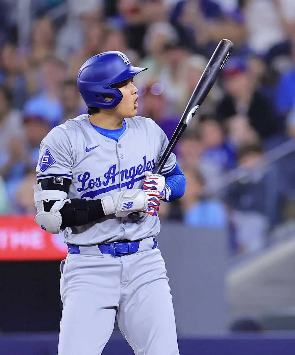 ドジャースの大谷翔平投手(29)が28日(日本時間29日)、敵地でのブルージェイズ戦に「2番・DH」で先発出場。2点を追う8回に一発出れば逆転となる無死二、三塁の絶好機で二飛に倒れるなど4打数無安打で3試合ぶりノーヒット。チームは1―3で敗れて連勝は6で止まった。