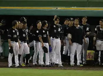 <オ・ロ>初回、森の二塁打で本塁を狙った西川が走塁死となり、喜ぶ佐々木朗(撮影・岸 良祐)