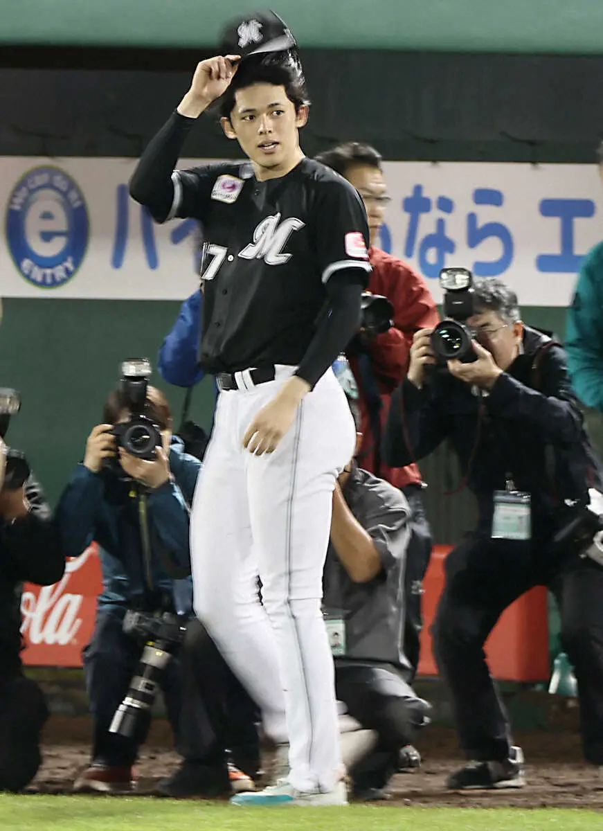 <オ・ロ>スタンドのファンにあいさつする佐々木朗(撮影・岸 良祐)