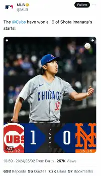 無傷の5連勝カブス・今永「狙いを外せた」NY初登板は「スパイダーマンで見てた景色」米メディア沸かす