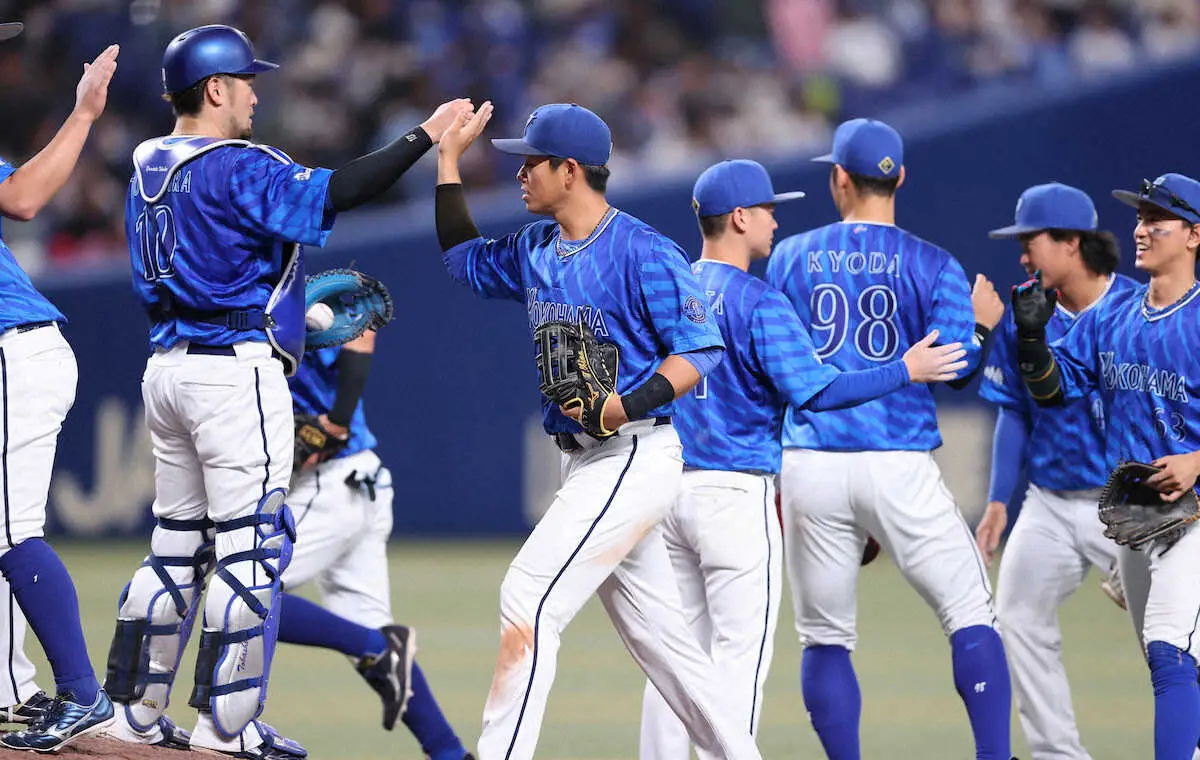 <中・D>初回、牧は3ランを放ち、石井琢コーチ(左)とハイタッチ(撮影・椎名 航) Photo by スポニチ DeNA 46年ぶりプレーボール6連打&28年ぶり初回9得点!度会に代わり先発… ギャラリーで見る この記事のフォト 2024年05月02日の画像一覧 もっと見る 2024年05月02日の画像をもっと見る