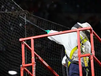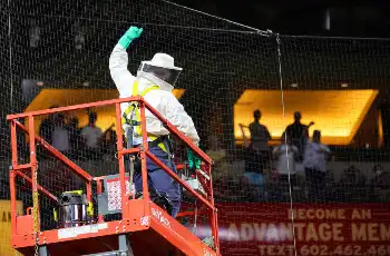 急きょ駆けつけて蜂の駆除に成功したマット・ヒルトンさんは、一世一代の大仕事を興奮気味に振り返った。「ゲームを開始させなければいけない重圧があった」。6歳の息子のティーボールの試合を観戦していた際、勤務先の「ブルースカイ・ペストコントロール」から緊急出動の要請を受け、30分で駆けつけた。「人道的に蜂を取り除いた」。大量の蜂は殺虫剤を含まない溶液で処理し、現場から別の場所に運び出した。