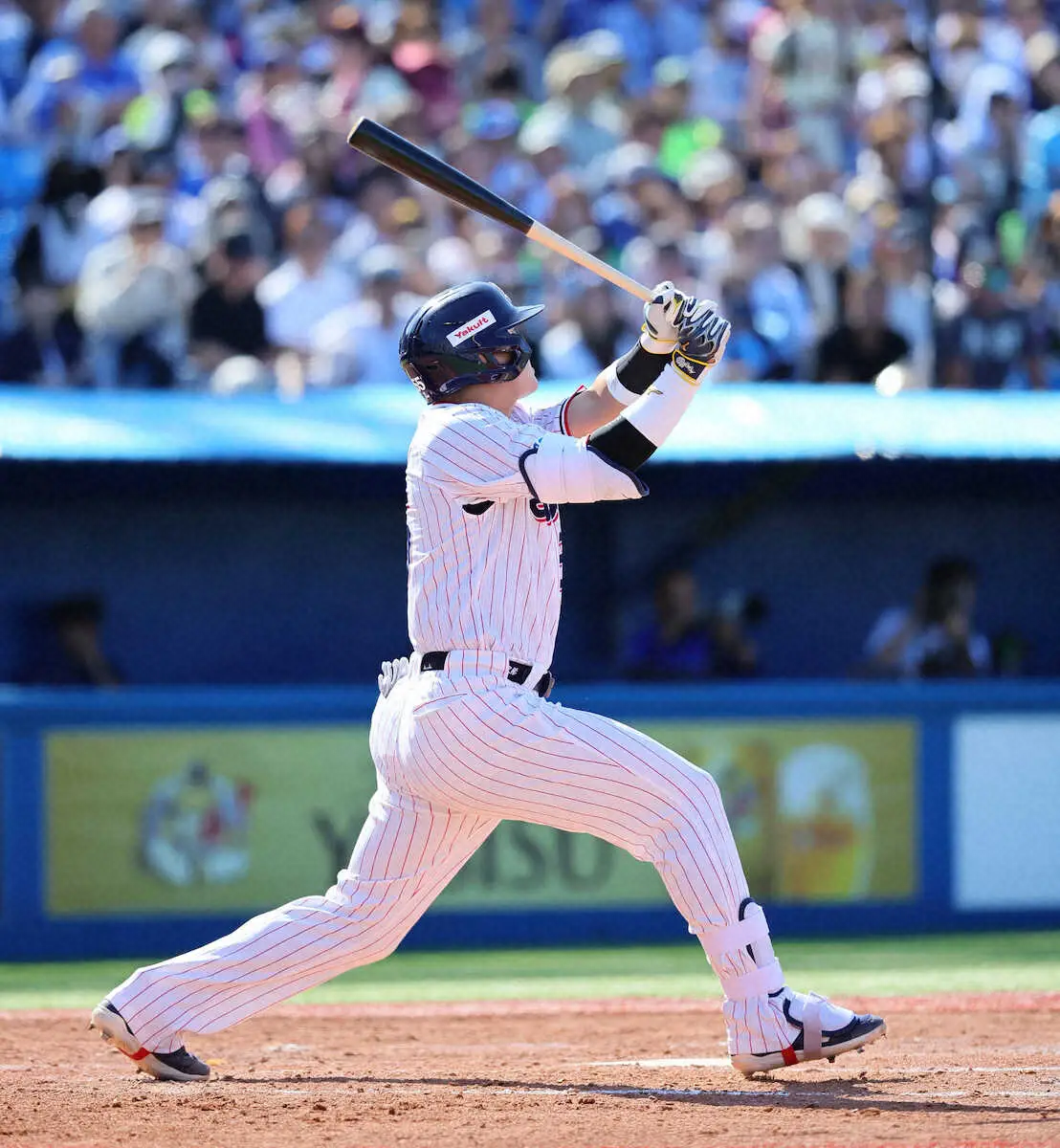 <ヤ・中7>3回、神宮球場通算100号となるソロを放つ村上(撮影・尾崎 有希)
