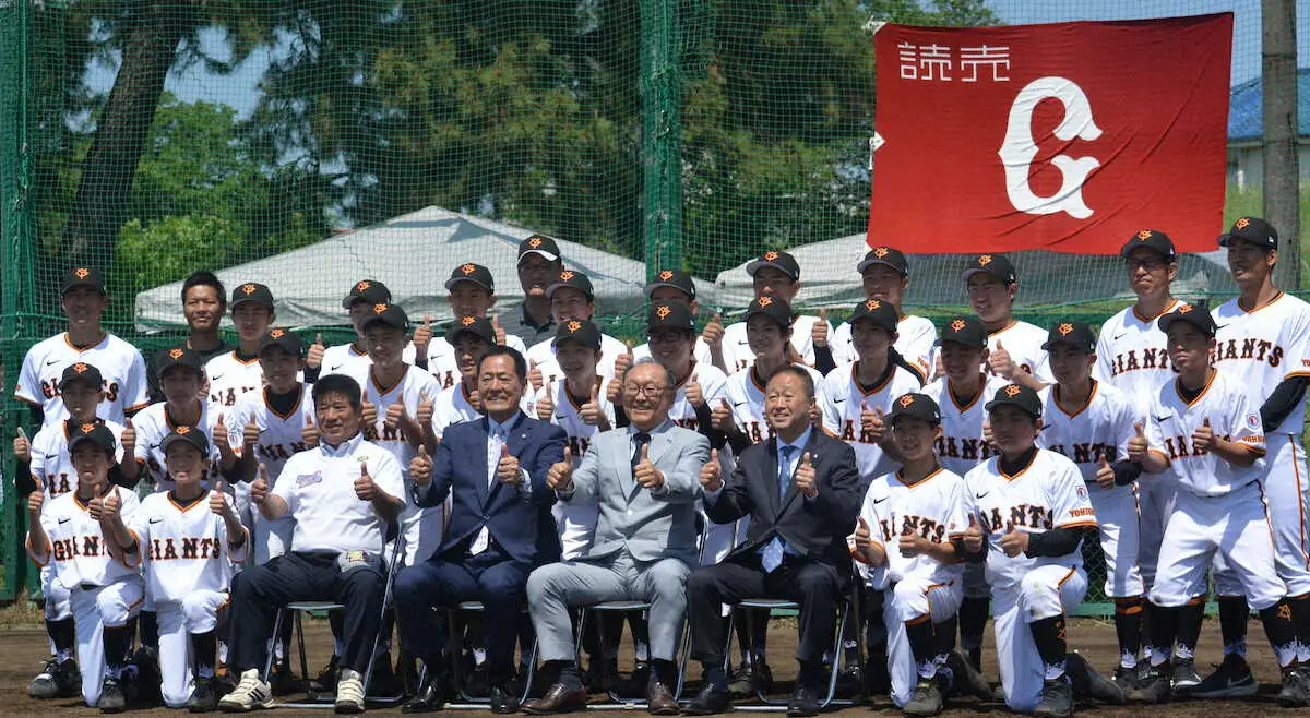 試合前のセレモニーには巨人・今村司球団社長も出席。「みなさんもこれを第一歩として元気で明るくはばたいてください」とエールを送った。