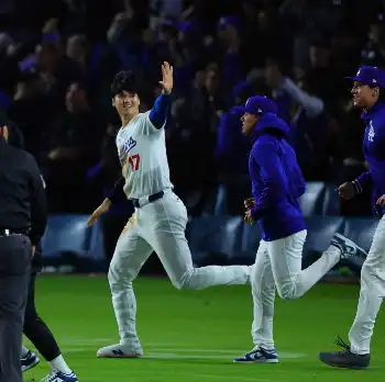 延長11回2死一、三塁から新人のアンディ・パヘスが中前へ詰まりながらもしぶとく落とすと、大谷は山本由伸らナインとベンチを出て歓喜の輪に加わった。劇的な勝利に本拠ファンのボルテージも最高潮となった。デーブ・ロバーツ監督は試合後、大谷の姿勢について「翔平は同点打となる大きなヒットを打って感情を露わにしていた。ドジャース対ブレーブスの大舞台でひるまない。みんなが戦った。私はファイトが好きだ」とチームを鼓舞する姿勢を称えた。