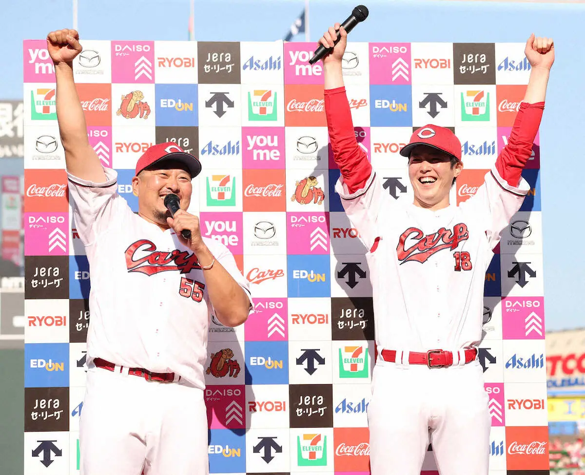 森下とともに上がったお立ち台では、「鹿児島にいるばあちゃん、天国にいるじいちゃん、今日俺やったよー!」と恒例の決めゼリフが飛び出すなど、チーム最年長のベテランは満面の笑みを浮かべた。