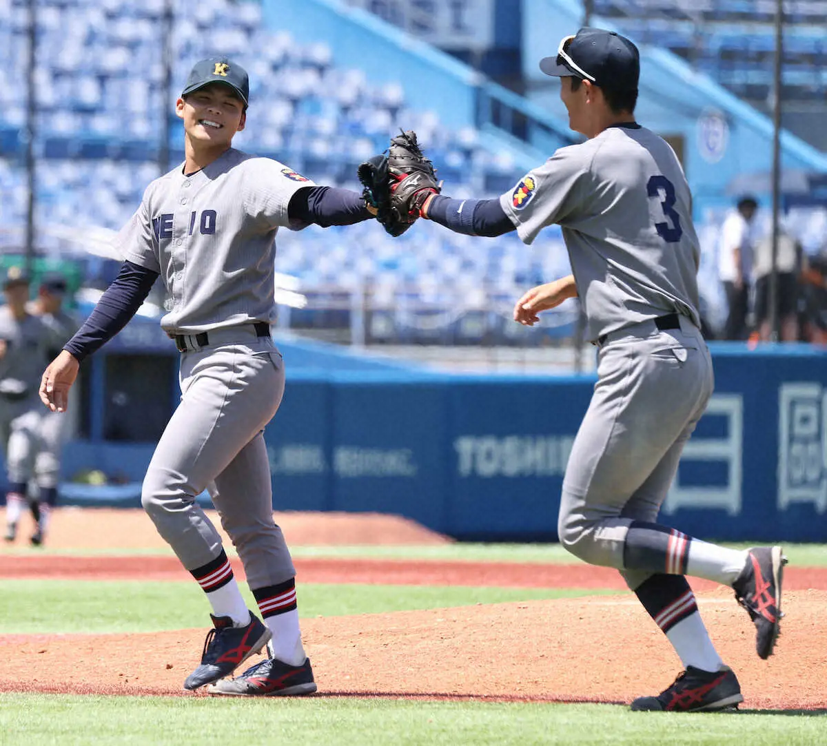 <立大・慶大>試合を制しガッツポーズする慶大・清原(左)、外丸(撮影・大城 有生希) Photo by スポニチ 慶大・清原Jr.が4番の仕事 初の3安打&決勝打に「清原という名で野球をや… ギャラリーで見る この記事のフォト 2024年05月04日の画像一覧 もっと見る 2024年05月04日の画像をもっと見る