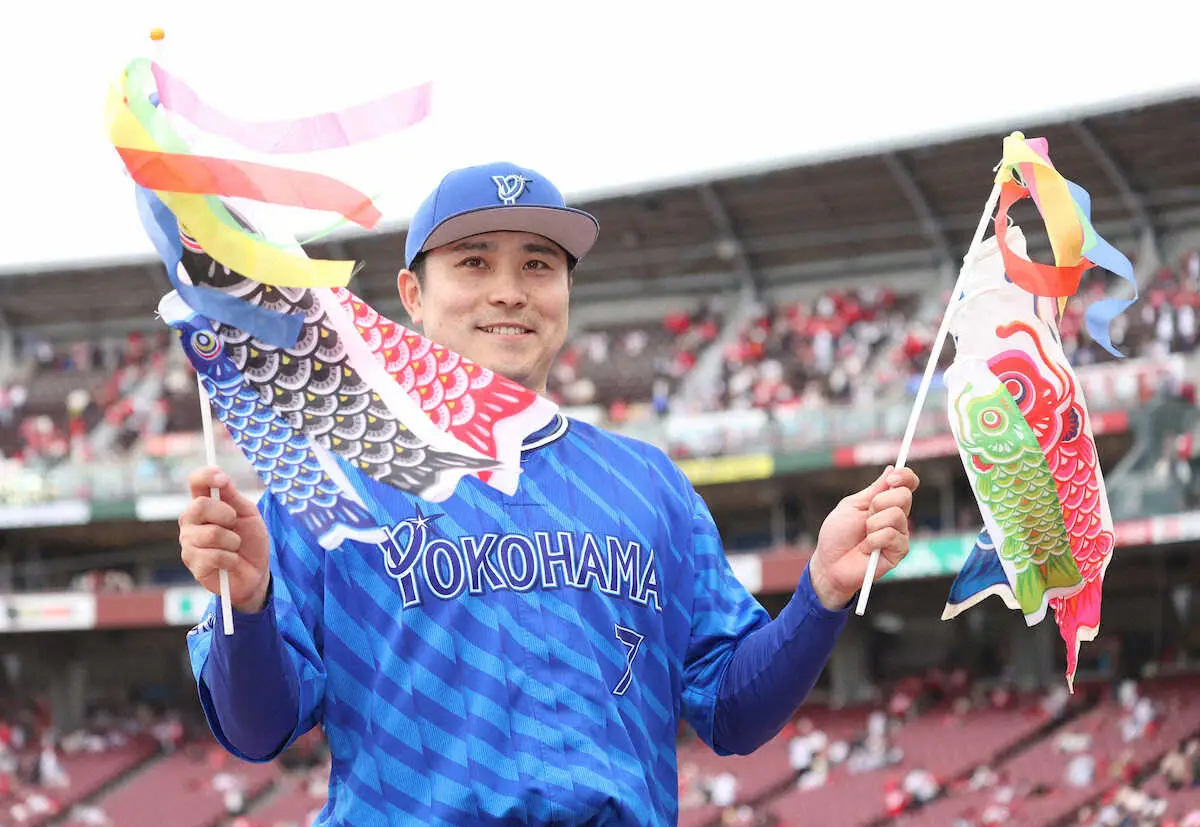 2―0の6回1死一塁、牧が九里のチェンジアップを捉え、左越え4号2ランでリードを広げた。「佐野さんが勢いをつけてくれた。(こどもの日に打てて)凄く意味があることだし、多くの子供たちが野球に興味を持ってくれれば」と声を弾ませた。これが球団日本人最速となる445試合目での通算500安打。祝弾で決めたことより、先輩に続けたことに意味があった。
