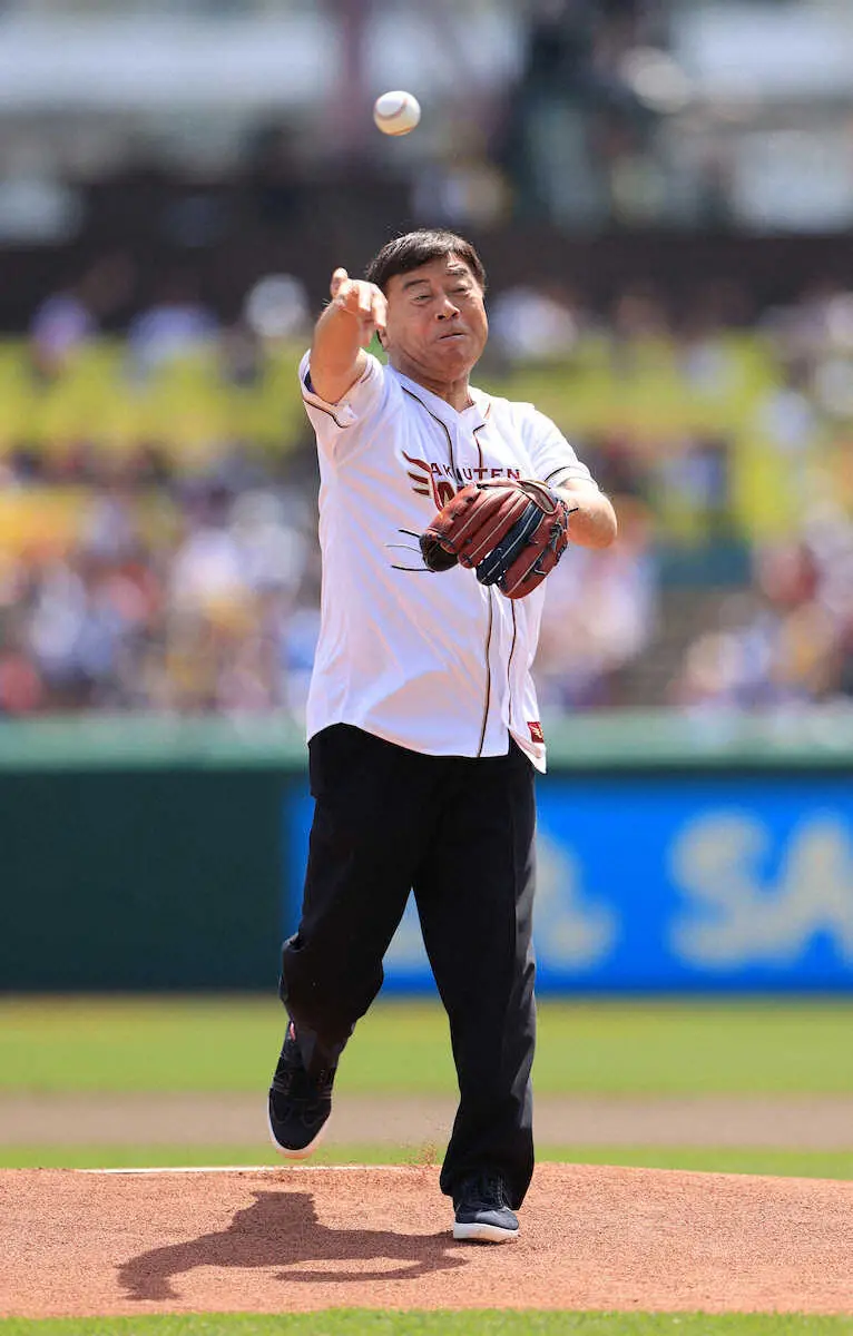 夢グループ社長が楽天戦で始球式 暴投もスッキリ「人生なんてこんなもんかな」