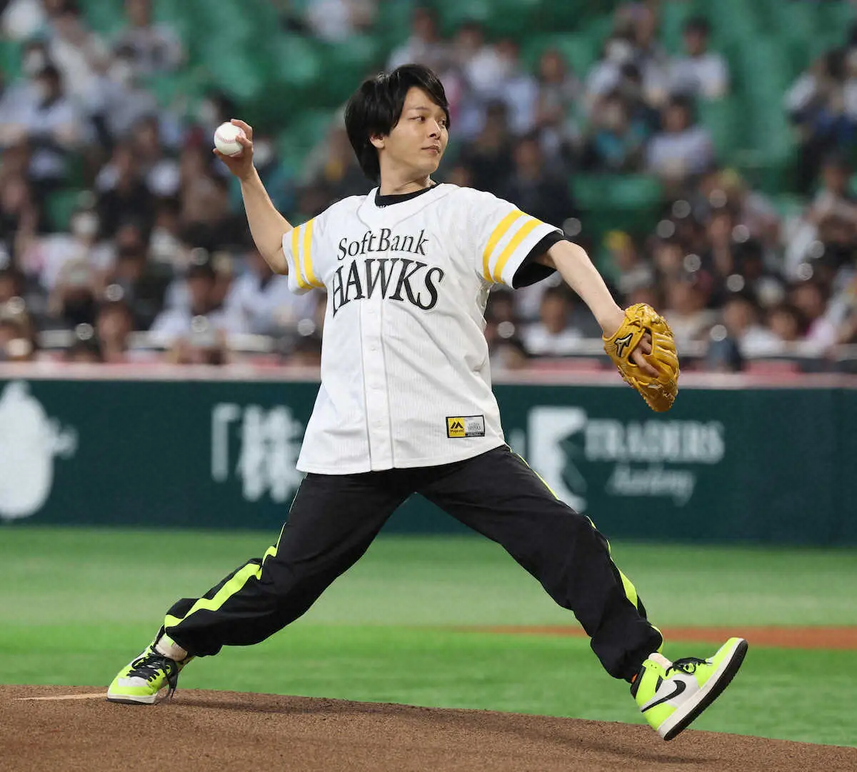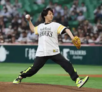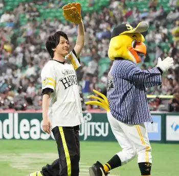 俳優の中村倫也(37)が7日、ソフトバンク日本ハム(みずほペイペイD)の試合前に行われたセレモニアルピッチに登場した。