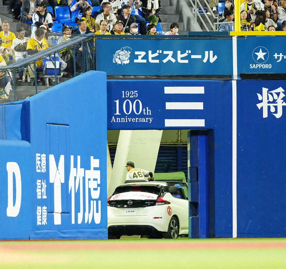 だから、予定していたダブルスイッチで交代となる左翼手・井上広大がベンチに向かって走り、左翼ブルペンの扉が開いてリリーフカーに乗った島本が出てきた。